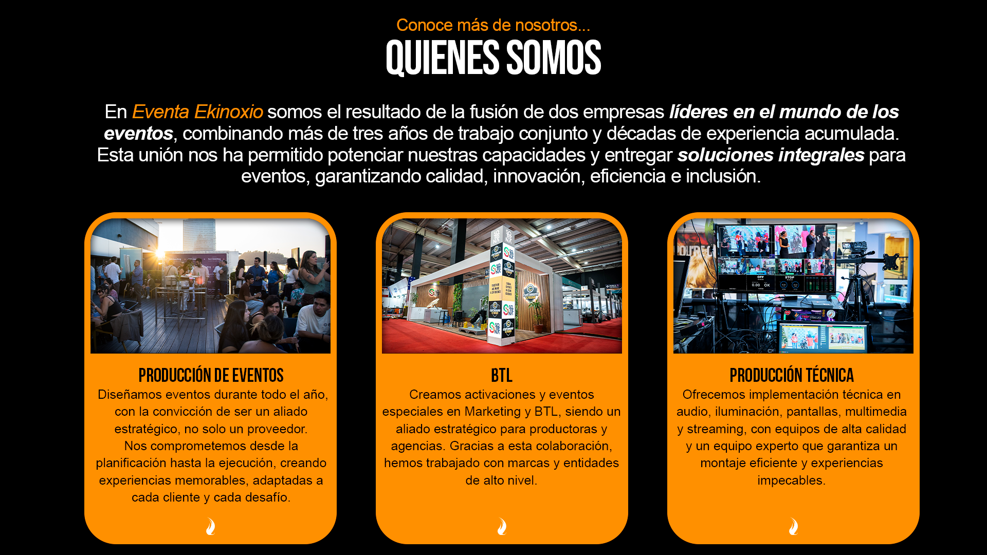 ¿Tienes una idea en mente o necesitas apoyo para la producción de tu próximo evento? En Eventa Ekinoxio estamos listos para ayudarte a llevar tus proyectos al siguiente nivel. Nuestro equipo de expertos se encargará de cada detalle para que tu evento sea un éxito memorable.
